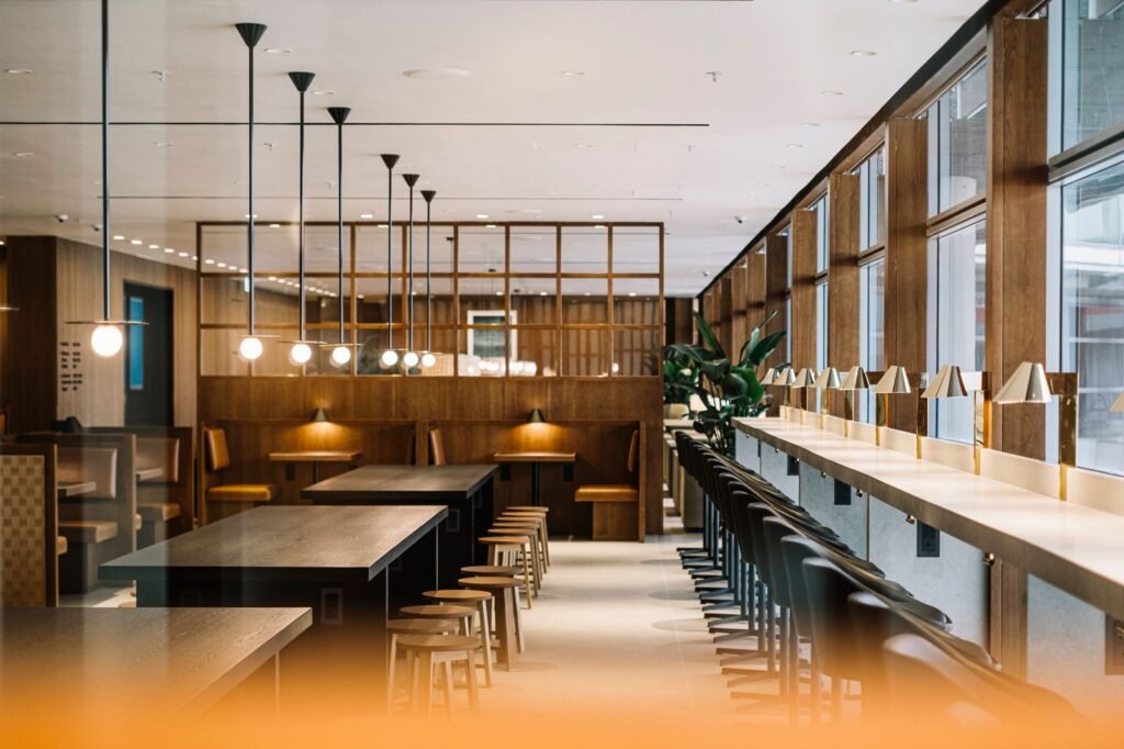 重新出发的「逸连堂」,不止在功能上升级,更在空间表达上提出了全新的语言。在香港国际机场一号客运大楼35号登机闸口附近,这片2,707平方米的区域被重新赋予温润又克制的美学表达,共设523个座位,将现代简约与东方气韵自然融合。