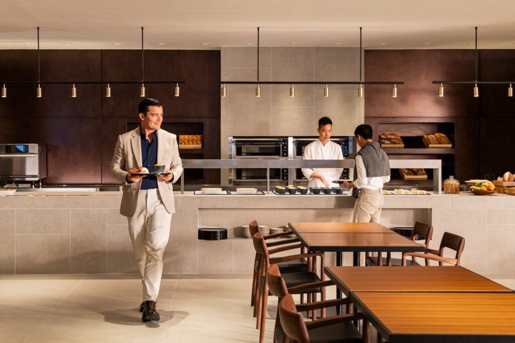 在「风味坊」,你能找到熟悉的香港茶楼气氛:点心车穿梭其中,现场手工制作的馄饨面、担担面、蔥油饼、热饭团一应俱全,甚至还有新增的川式牛腱等应季料理。这里不仅仅是填饱肚子,更唤醒了许多旅客心中对亚洲街头味道的情感共鸣。