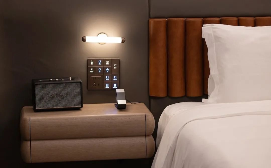 每间客房还配有品牌标志性的瑜伽垫、帆布袋、定制文具与轻阅读材料,同时配备Marshall蓝牙音响、Dyson吹风机、SMEG热水壶、Nespresso Vertuo Plus咖啡机等高端设备,形成统一且完整的“高感知标准化”体验。