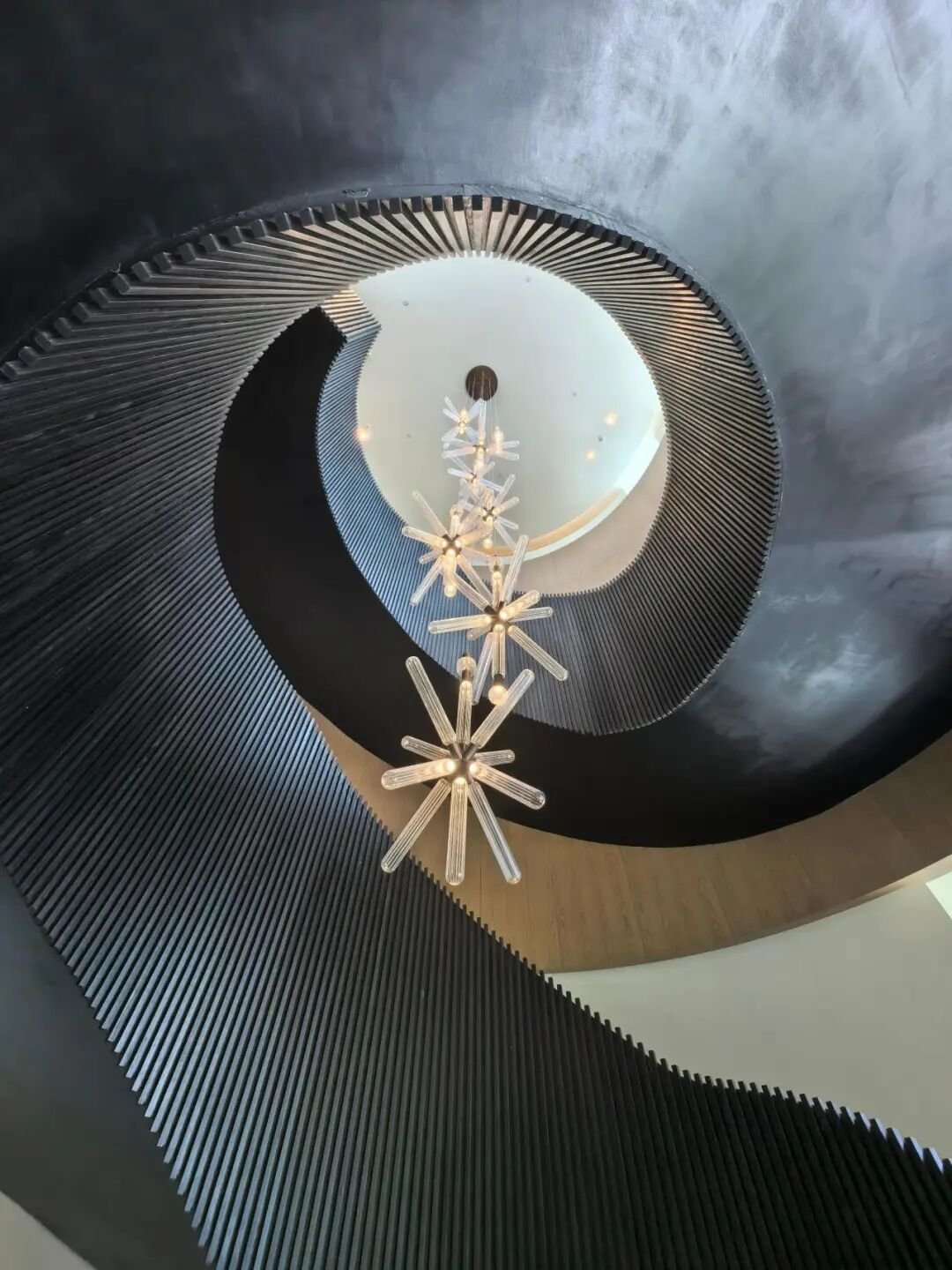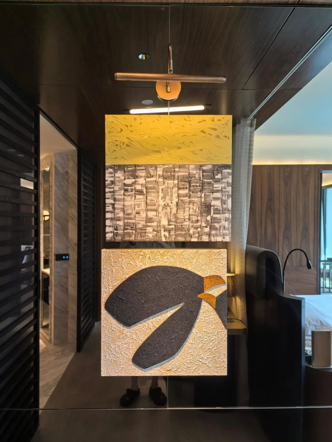 值得注意的是,艺术不再只是挂在墙上的点缀。在清水湾金普顿,艺术被有机植入空间动线上,从旋转楼梯到各层走廊、从餐厅入口到户外露台,装置、材质与光线共同构成了一个“可步入的展览”,设计本身也成为体验的一部分。这不仅是视觉上的愉悦,更是一种情绪上的舒展。