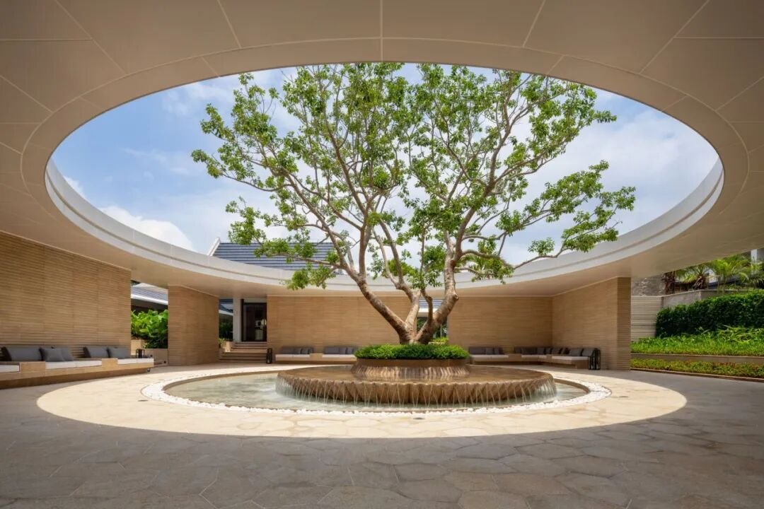 对于更强调“自我感受”的住客来说,名为“洋 Solis”的水疗中心则是另一片疗愈空间。建筑整体以白色体块为主,四周绿植环绕,入口中庭设有象征生命力的“生命之树”,自然光从圆形天井洒落,配合流动水景构建出一个极具能量感的场域。护理服务覆盖面部、精油按摩、头疗等多个项目,所使用的精油可根据客人状态定制选择,由来自泰国的资深理疗师执行流程,专业度与舒适度均在水准之上。