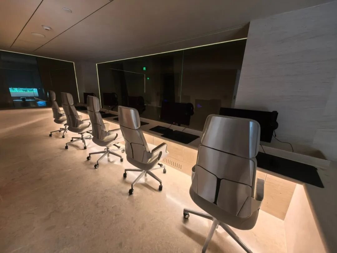值得一提的是,酒店还设有一个风格迥异的电竞中心——这在中国高端度假酒店中极为少见。中心共配有9个独立包厢,覆盖1至5人不同需求,设备选用顶配游戏硬件,部分区域的设计灵感甚至取材自《沙丘》等未来题材影片,整体风格偏向金属感与赛博气质。它不仅满足了新世代住客对于多元娱乐的需求,也打破了高端酒店“功能保守”的惯性思维。